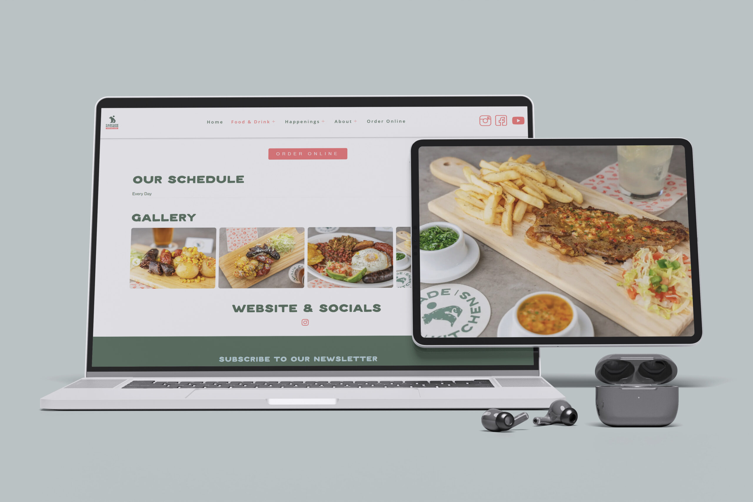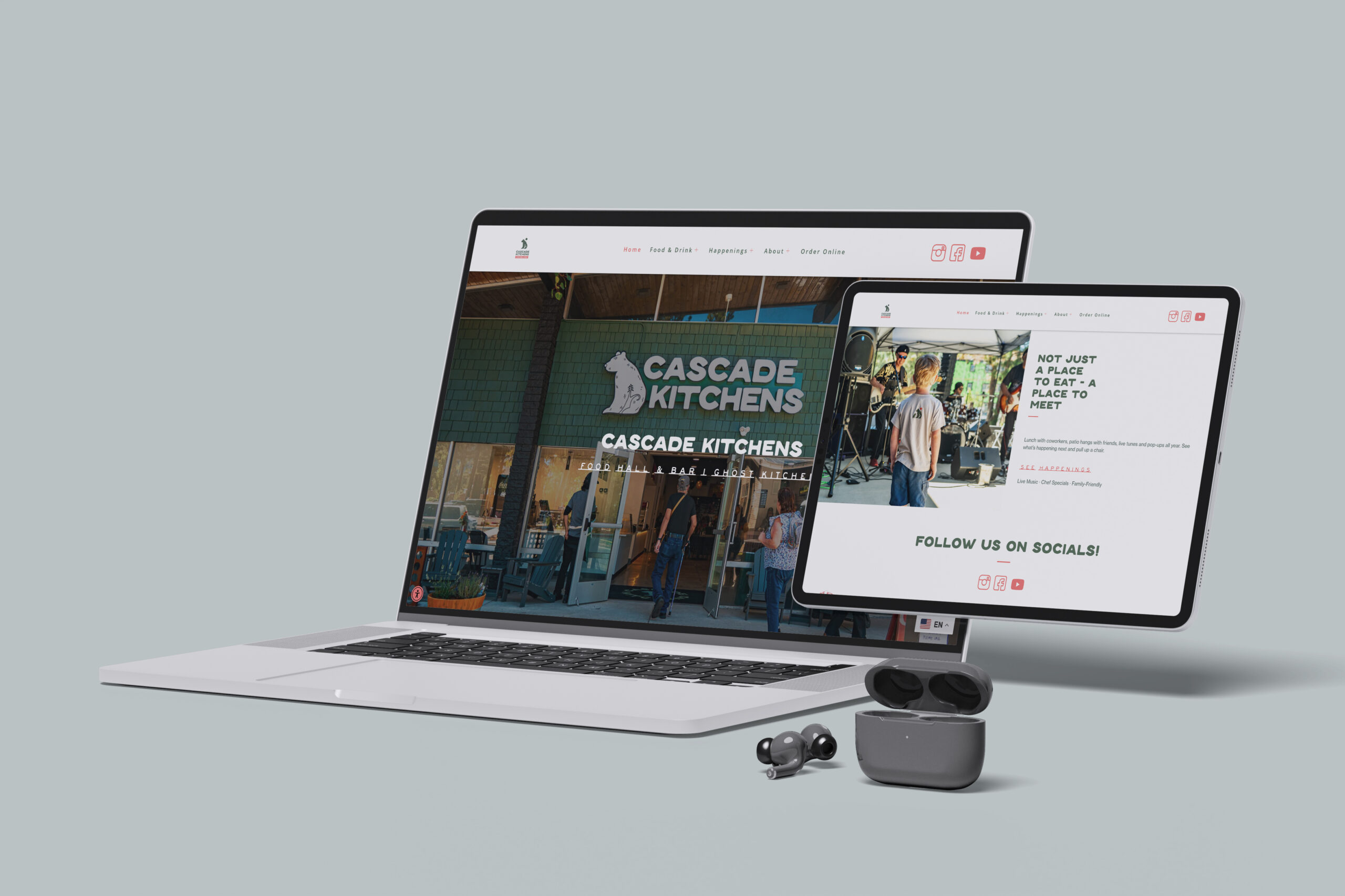 Cascade Kitchens was a fully realized brand project, spanning visual identity and voice development, print and digital collateral, a robust website with online ordering integration, PR and media coordination, and extensive photo and video production. Within this larger effort, MCBCreative partnered closely with the team to provide focused support in the following areas: